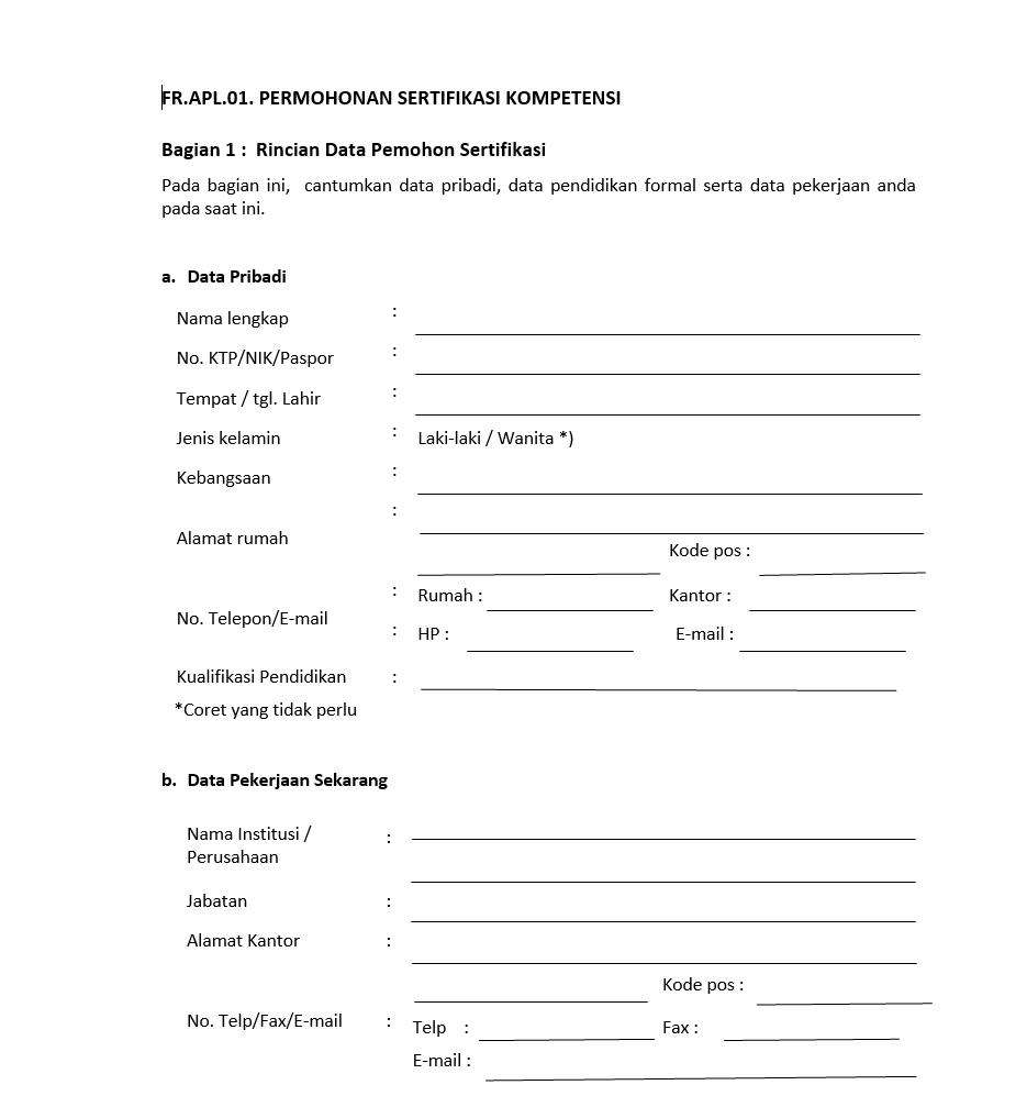 1. Sertifikat pelatihan /surat keterangan lulus dengan skema yang sama dari balai pelatihan kerja
